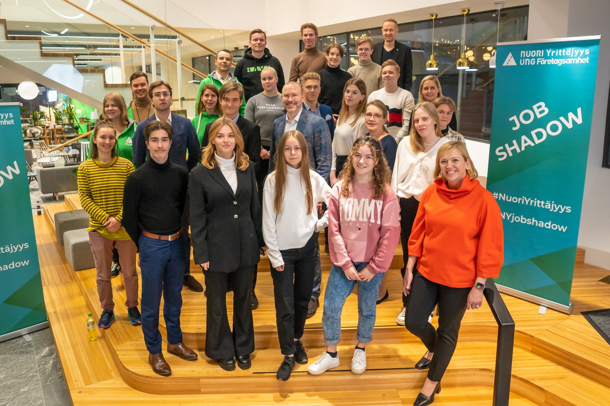 Cheferna som deltog i Job Shadow dagen representerar ett brett spann av företag och institutioner. Från SEB deltog Saija Korkala, Head of Investor Services och Juuso Pohjola, Head of Sales, Private Banking. Deras sällskap för dagen var två av killarna som tidigare i år vann SEB:s signaturpris i “Våga vara företagsam” tävlingen och UF-företaget Nordvis grundare Luka Mansikka och Niklas Snäll från Lauttasaaren yhteiskoulu.