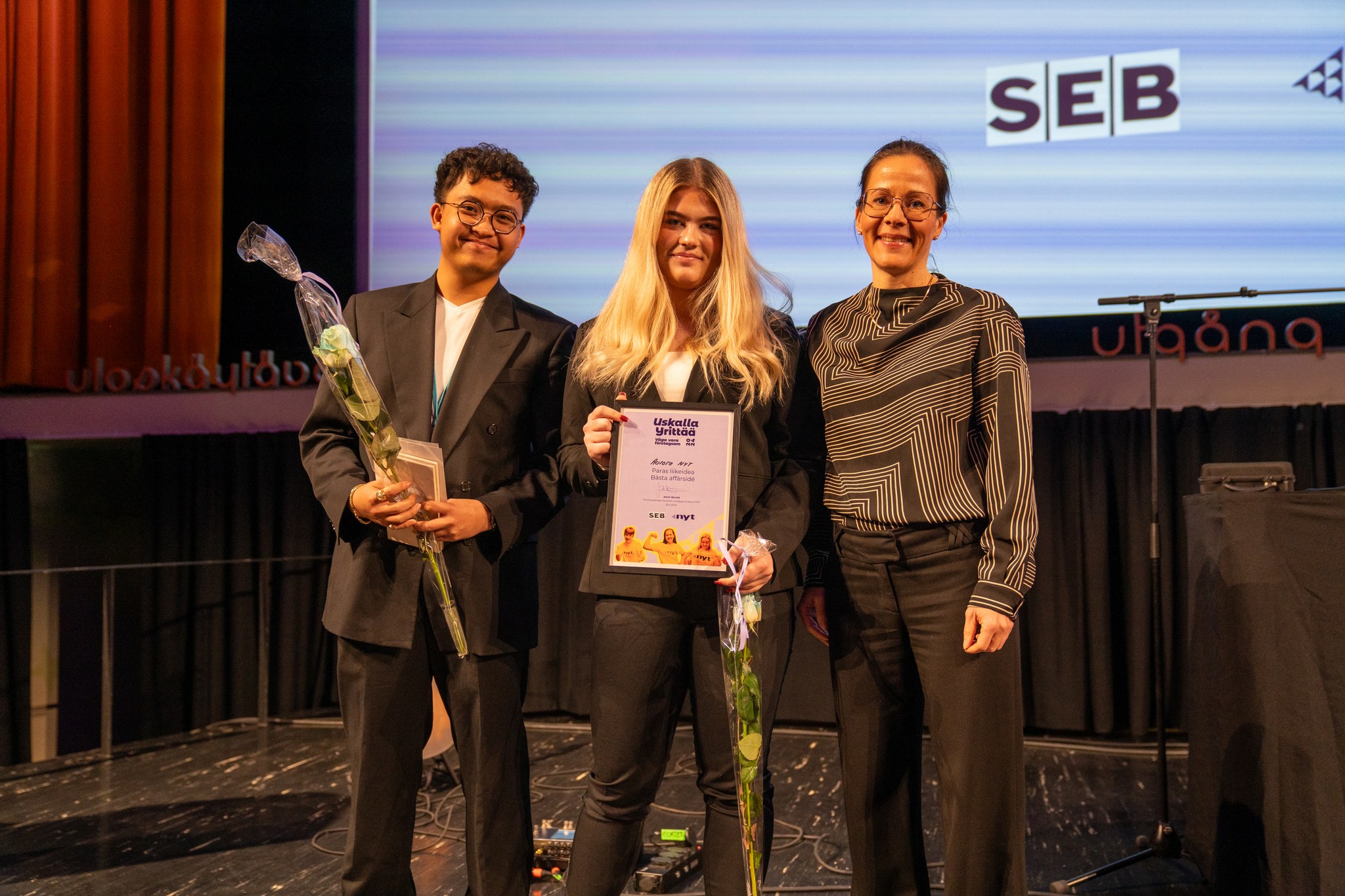 Priset för bästa affärsidé, som delas ut av SEB, vanns av Aurora NYT från Vasa. Affärsidén baserar sig på problematiken kring mental ohälsa bland unga och företaget har skapat en dagbok för reflektion och kontemplation, med ifyllbara sidor och berättelser om andras erfarenheter.